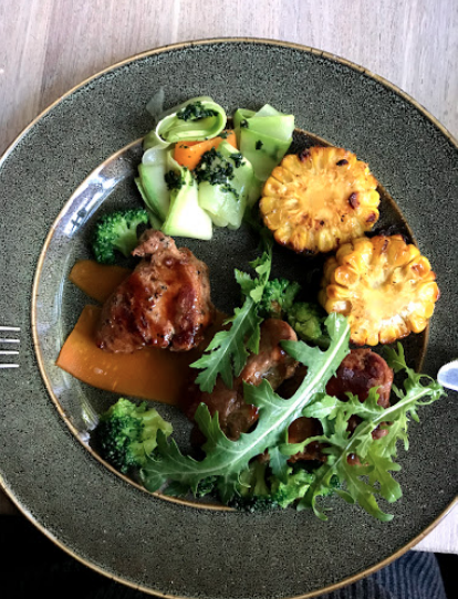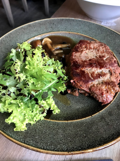 Прийшла на обід в вихідний день. Офіціантка була на висоті- дуже старалась, бігала, швидко все приносила. Страви були смачні- стейк був прожарений так як я сказала. Що залишилось- все гарно запакували з собою. Музика грає не голосно, можна поспілкуватись з співрозмовником. Вийшла звідти з гарним настроєм. Дякую