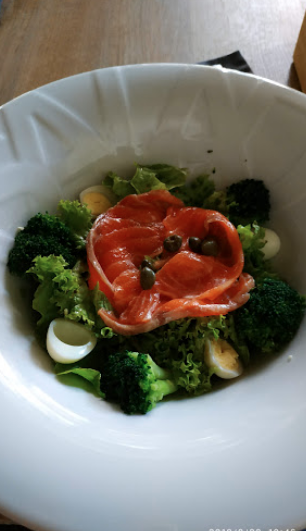 Чізкейк дуже смачний, а салат "Фреска Італія" "на любителя": листя салату гіркувате, помідори наче варені. Сподобався інший салат: з лососем. Справді смачно. Смузі теж клас, хіба що трохи захолодне. Обслуговують швидко. Але не все, що є в меню, в наявності. І ще сподобалось, що до чаю подають не пакетики з цукром, як подекуди, а цукерничку.