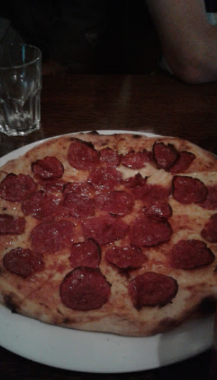 Піца смачна, дуже сподобалося місце)))) При вході нас зустрів Адміністратор, що дуже порадувало. Провів за столик, прийняв якісно замовлення) Замовлення практично ми і не чекали, по скільки все приготовлено, було дуже швидко!) Правда місце схоже на ПАБ але тим не менш, персонал вишка і їжа теж