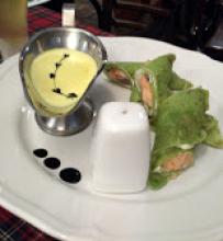 Вкусные блины с семгой , очень приятная живая музыка. Не дешевое заведение , немного места