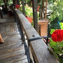 Колоритный интерьер, с предметами утвари на стенах, и не менее интересное меню! Вкуснейшая рыба с овощами, приготовленная в печи, грибная юшка и конечно же десерт — сало в шоколаде в сочетаниии с траченным чаем никого не оставить равнодушным!
